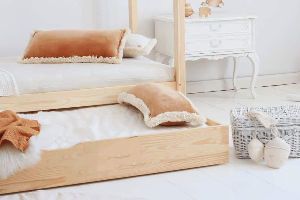 Esta cama combina a la perfección utilidad y diseño. Su cajón práctico proporciona espacio adicional para almacenamiento o puede convertirse en una cama supletoria, ideal para visitas de amigos o para organizar las pertenencias de tu hijo. Su diseño cuidado aporta un toque de sofisticación nórdica a cualquier habitación infantil.