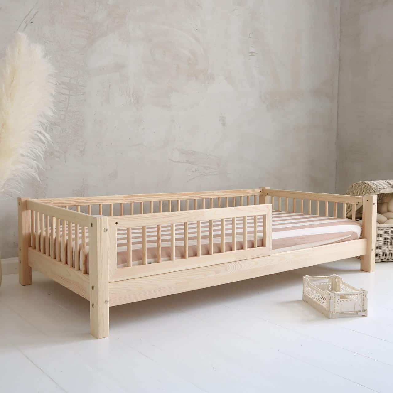 La seguridad de tu hijo está garantizada con la cama Stockholm 80×160 cm. Equipada con una barrera de protección desmontable que se adapta fácilmente a diferentes configuraciones, esta cama está diseñada para ofrecer noches seguras mientras proporciona un espacio de libertad adecuado.