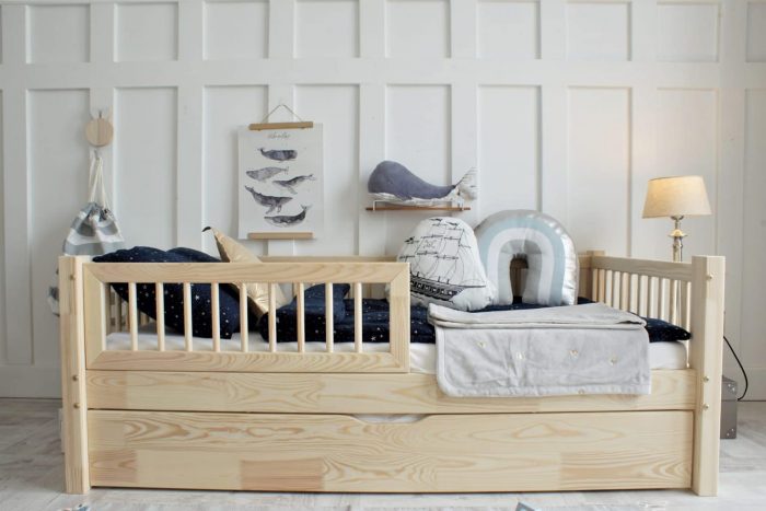 Opta por un mueble multifuncional con nuestra cama. Se transforma en una cama doble para recibir a los amigos, ofrece un espacio de almacenamiento discreto y garantiza la comodidad y seguridad de tu hijo. Su robustez asegura una inversión duradera, acompañándolo desde sus primeras noches hasta la adolescencia.