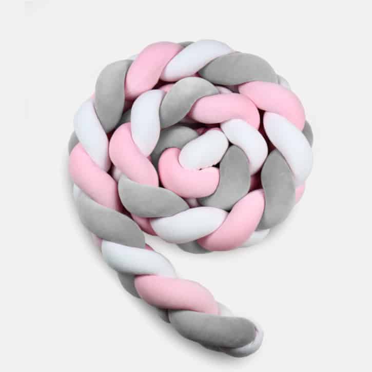 Trenza de cama – 3 hilos – Rosa Gris Blanco